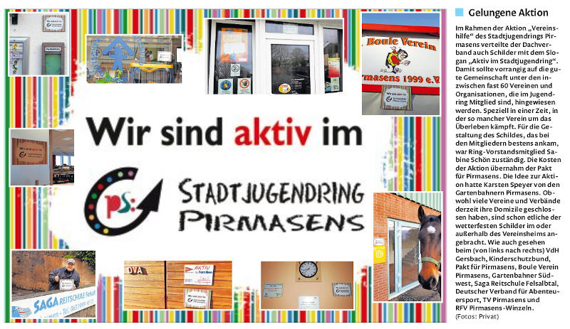 2020 - Kurzbericht in der Pirmasenser Zeitung: Schilderaktion "Wir sind aktiv im Stadtjugendring Pirmasens"